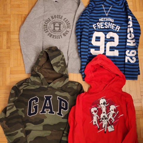 Poikien pitkähihaisia puseroita ja huppareita 6 kpl sekä housuja 3 kpl( farkkuja 2 kpl ja 1 collarit).