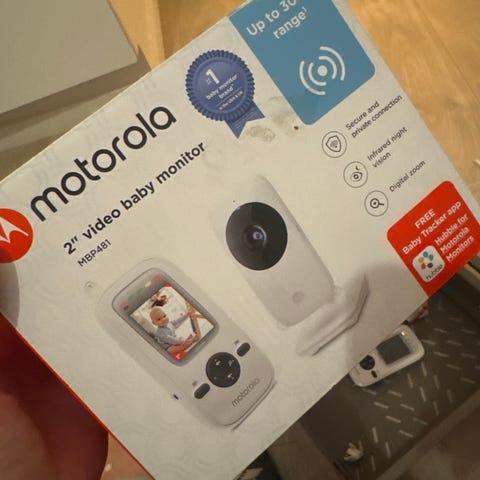 Vain muutamia kertoja käytetty Motorola-merkkinen vauvamonitori. Paketti sisältää käyttöohjeen, kaksi laturia ja kaksi itkuhälyttimen osaa, lapsen yksikkö mikrofonilla ja vanhempien yksikkö kaiuttimella. Vanhempien yksikkö toimii myös langattomana paristojen avulla, eli voi pitää vaikka taskussa mukana. Äänenlaatu selkeä ja mikrofoni laadukas (meillä nappasi selkeänä naapurin puheen viereiseltä parvekkeelta.) Ostettu uutena keväällä 2024.