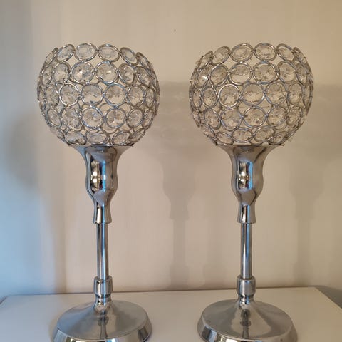 Ihanan kauniit kulta-kristalli kynttilänjalat 3kpl. Korkeus noin 7cm.