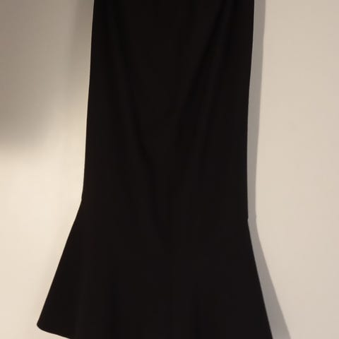 Damin musta kiiltävä juhlahame, musta, koko 40, helmassa kuvio ja helman reuna aaltoileva.
