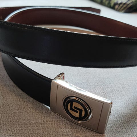 Cropp Accessories vyö, jossa on kolme riviä neliönmuotoisia muovisia koristeita. Vyön pituus on noin 108 cm. Se on musta, tehty nahasta ja sopii unisex-käyttöön.