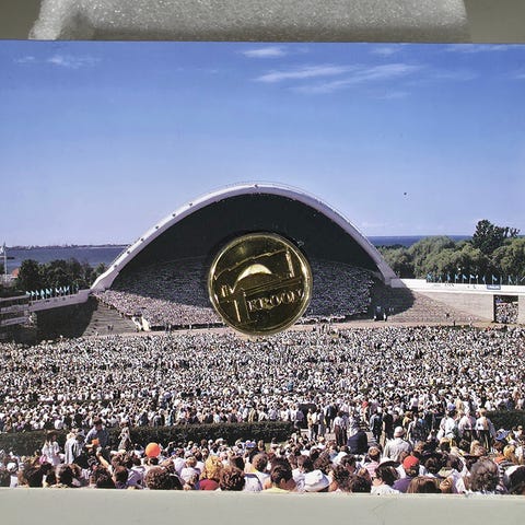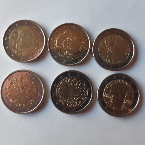 Eino Grön keräilykolikko, jossa on kuva Eino Grönistä ja pianoaiheinen tausta. Kolikko on suojakotelossa ja siinä on teksti 'Suomalainen Iskelmän Legenda' sekä 'Music Club Fame'.