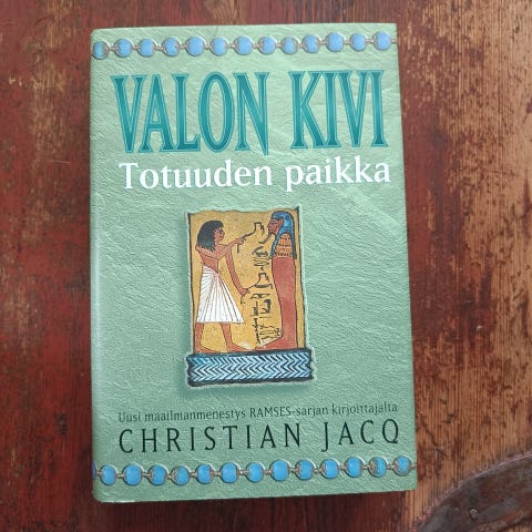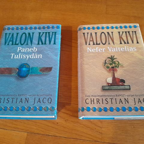 Christian Jacq Valon Kivi kirjasarja sisältää neljä osaa: Tietäjäniemi, Totuuden paikka, Nefer Vaeltaja ja Paneb Tulisydän. Hyvässä kunnossa paitsi osan päällinen revennyt. Yhteensä 30€.