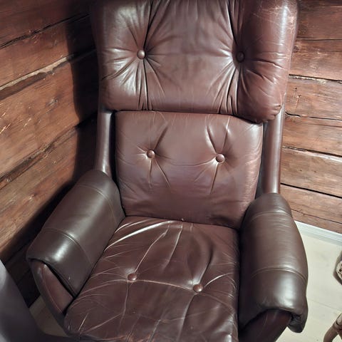 Keinonahkaiset tuolit irroitettava niskatyyny. Todella makeet 60-70 luvulta. 50e/kpl