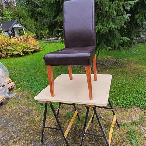 Toinen käsinoja vähä heiluu. Muuten hyväkuntoinen ja hyvä istuttava keinutuoli.