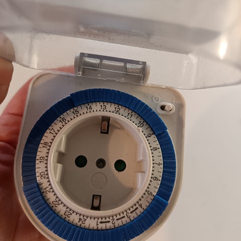 Myynnissä täysin toimiva Carman-merkkinen vuorokausiajastin ulkokäyttöön.