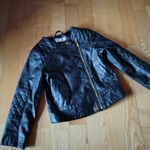 Uusi tekonahkainen takki, H&M koko 110. Vain sovitettu. Ihania yksityiskohtia.