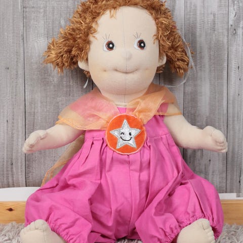 Rubens Barn Classic Cutie nukke, jossa on vihreä, valkoisin pistein koristeltu mekko. Nukke soveltuu lasten leikkeihin ja keräilyyn. Uusi vain säilytyksessä ollut, alkuperäistä laatikkoa ei ole enää tallessa.