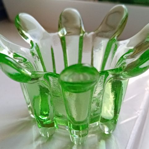 Myydään kuvassa oleva vanha näyttävä lasi vaasi/kiulu. Paino 5 kg. Mitat n. 30 cm pituus ja korkeus n. 24 cm