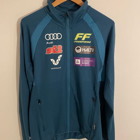 Joman valmistama lämmin tekninen huppari jossa sisäpuoli fleecen tapainen mutta ohut, päälipuoli verkkakankainen. Rinnuksessa 'Hurrikaani' -logo 'team with the feeling' (Hämeenlinnan hiihtoseura) koko merkintä xxl mutta vastaa kokoa M/L