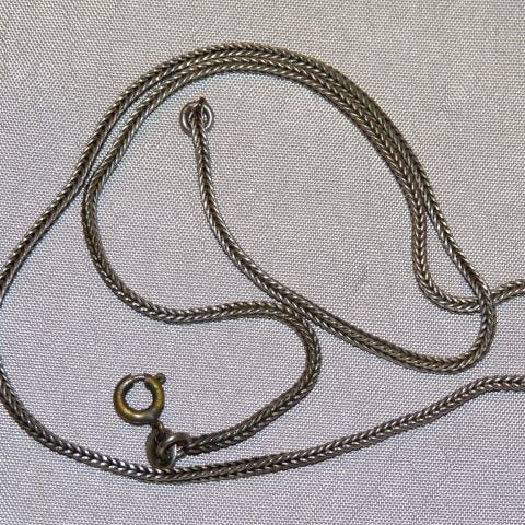 Vintage hopeakoru lyhyellä ja upealla 42 cm ketjulla. Riipuksen koko: 18mm x 18mm