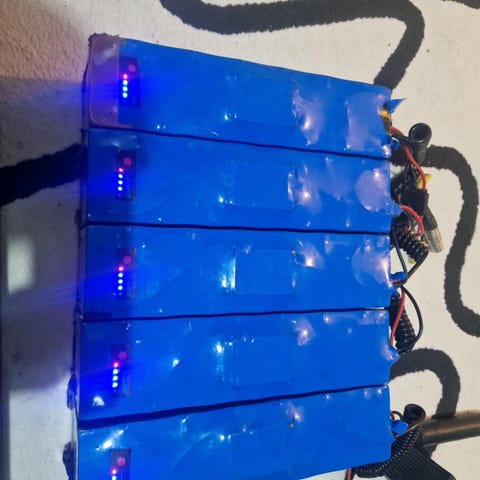 Akut on kytketty 24 kappaleen paketteihin rinnankytkennällä ja paketit 4kpl sarjaan kuten kuvista näkee. Kennoissa EI ole suojapiiriä.