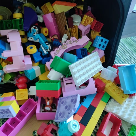 Duploja laatikollinen. Mukana kaunis linna, poni, kasveja, kukkiq ja merenneito sekä harmaa ja vihreä alusta. Nouto Espoon Lippajärveltä tai postitus onnistuu myös.