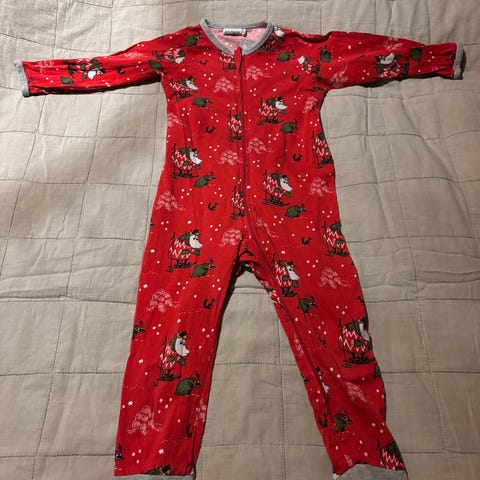 Moomin by Martinex vetoketjullinen muumipyjama kokoa 86. Edessä kankaassa pieni pinttynyt tahra, katsothan kuvan.