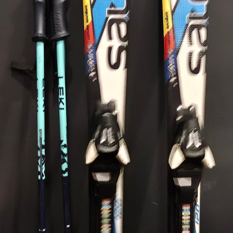 Salomon Race JR 120 R9-sukset ja Salomon 5-siteet.