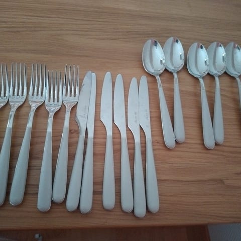 Käyttämättömiä, pestyjä (veden jäljet veitsissä)
