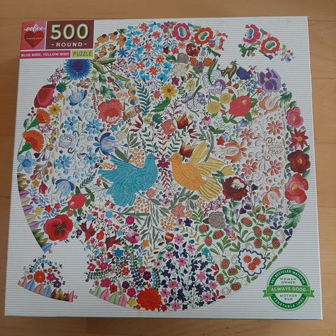 1000 palan pyöreä palapeli. Valmiin palapelin läpimitta 68cm. Kaikki palat löytyy.