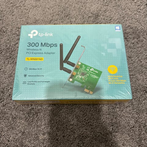 TPLinkin vanhempi verkkokortti. Tällä saa wifin pöytäkoneeseen. PCI liitäntä.