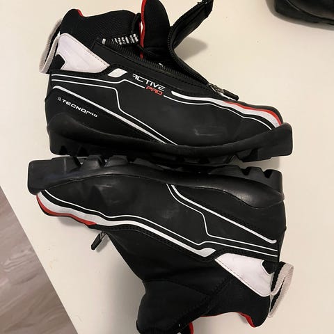 Myydään lasten mustat Tecno pro monot kokoa 38. Pohjallisen sisäpituus 24,5 cm.