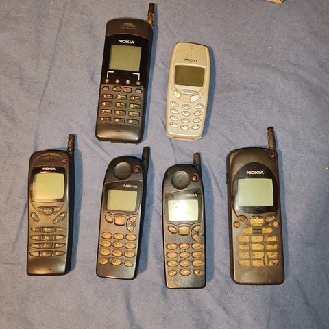Mukaan 2xNokian pikkupäistä laturia ja 1kpl isopäinen. Koko paketin Nokian luureille käy toistensa akut.