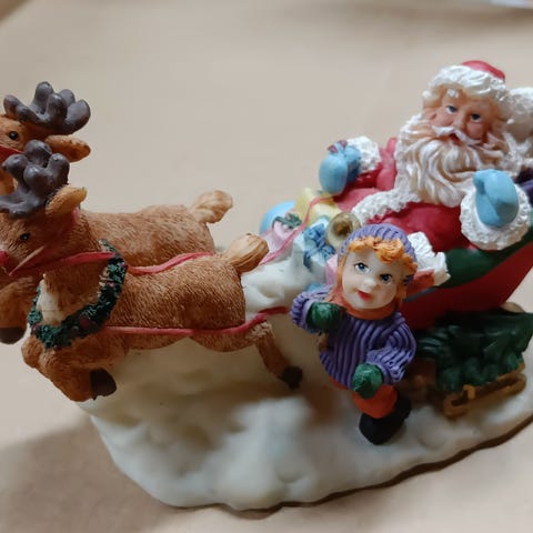 Joulupukkien korkeus n.8,5 cm. Tontun korkeus 9,5 cm ja tonttu ja possu 6,5 cm.