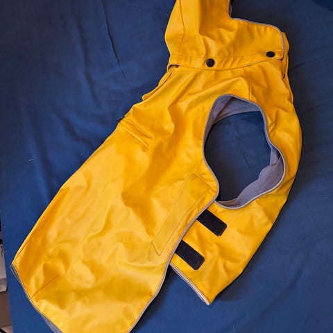 Myydään hyvä koiran kurahaalari. Vetoketju koko matkalta ja kaulus. Tarranauhat lahkeiden suissa. Heijastinnauhaa saumoissa. Kokomerkintä 50. Vähän nafti isokokoiselle lapinkoiralle ja siksi myyntiin. Pesty ennen myyntiä, mutta joka paikasta se ei enää ole kirkkaankeltainen siitä huolimatta.
