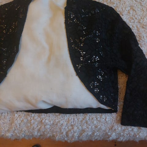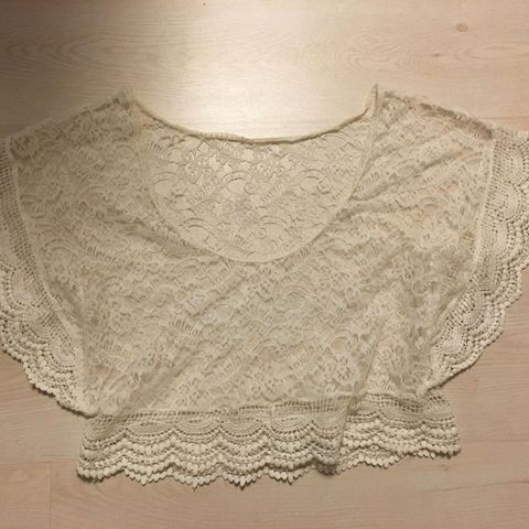 Valkoinen (ivory?) pitsinen M-koon bolero. Hyväkuntoinen.