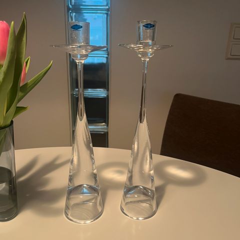 Myydään kaksi kirkasta Nuutajärven Aurora-kynttilänjalkaa. Suunnittelija: Heikki Orvola. Korkeus: 18,5 cm. Nouto tai postitus. Voidaan toimittaa Hämeenlinnan, Turun, Tampereen tai Helsingin keskustaan pientä korvausta vastaan.