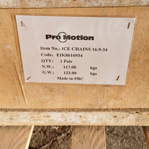 Jääketjut 11 mm. Selkäketjun pituus noin 4,8m, ketjun leveys noin 65 cm ja sivuketjun pituus noin 3,4 m. Kohtalainen kunto ja kelpaa hyvin pihahommiin ja metsään. Minulle liian lyhyet, ei sovi 16.9x34" renkaille. Kulkeutuu tarvittaessa Tammisaareen.