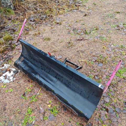 Yksisiipinen hevosten vetämäksi tehty Fiskars aura. Rautarunkoinen, ohjausvarsien päissä olleet puiset kädensijat puuttuvat.