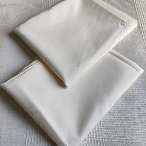 Prismasta ostetut kauniit pellavaiset verhot, jotka on vain kokeiltu ja valitettavasti todettu omaan sisustukseen väärän sävyisiksi.