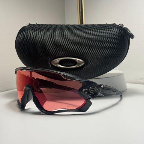 Oakley Jawbreaker urheilulasit unisex. Lasit sisältävät suojakotelon, pehmeän pussin ja vaihdettavan nenäosan. Kehys on monivärinen, ja linssit ovat tummat, sopivat ulkoiluun ja urheiluun.