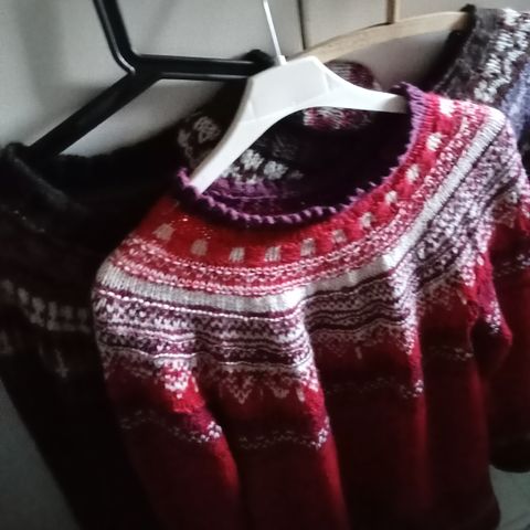 Iku-Turso-ohjeella neulottu pusero Rauma Garn Vams--langasta. Reilu L-koko, kai-kai n.60cm, olka-helma n.75cmm.