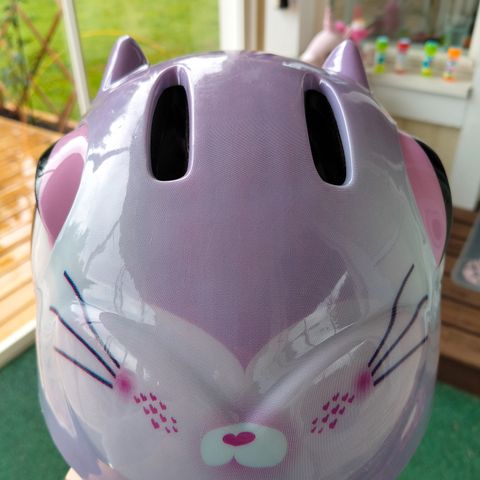 Käyttämätön lasten kypärä, jossa muutamia pieniä naarmuja säilytyksestä. Täysin ehjä ja käyttökunnossa. Kypärässä on useita tuuletusaukkoja ja säädettävä hihna. Sisäpuolella pehmusteet.