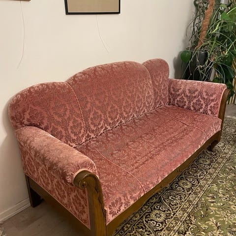 Lisäksi kaksi saman sarjan sohvatyynyä. Sekä sohva että tyynyt ovat erinomaisessa kunnossa.