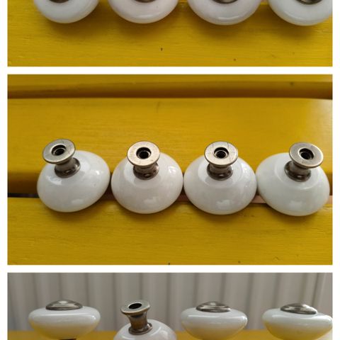 Valkoinen nuppivedin, noin 4 cm, 4 kpl, kiinnitysruuveineen