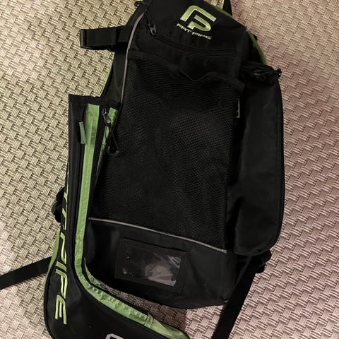 1-13. Fatpipe maila/varustekassi salibandyyn,sisällä nepparikiinnityksellä kenkäpussi/pesu tarvikkeille oma pussi ja mailapussi erikseen laukun sisälle jossa kantokahva, mailat pysyy paikoillaan ja säästää tilaa, laukun päässä olevaan numeroon ei ole merkattu omaa pelinumeroa, mutta laukun sisällä olevassa maila pussissa on kirjoitetut numerot, laukun toisessa päädyssä ja toisella sivulla vetoketju taskut
