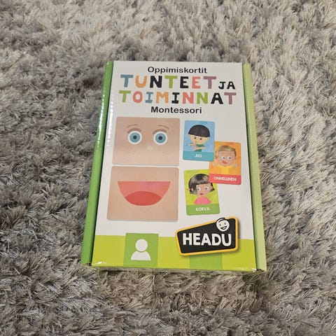 Montesssori sanakortit. Ensimmäisten sanojen kuuleminen ja ääntäminen. 10 värikästä muotoa aseteltavaksi sille sopivaan paikkaan. Alkuperäistä pakkausta hieman teipattu. Kortit siistissä kunnossa.
