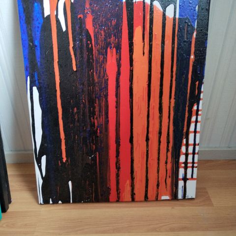 Akryylimaalaus, jossa on kukkia. 24x30 cm, maalattu ohuelle maalauspohjalle.