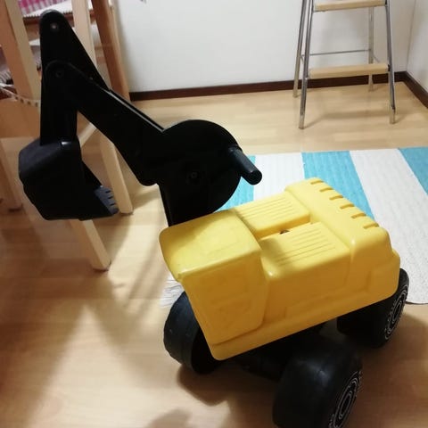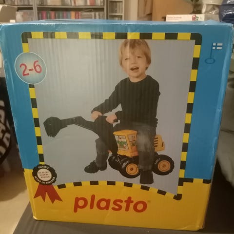 Keltainen Plaston Diggy kaivuri, joka tarkoitettu ulkokäyttöön. Tarroja teipattu uudelleen, mutta muutoin kunto on oikein hyvä. Vähän käytetty. Kissatalous. Nouto.