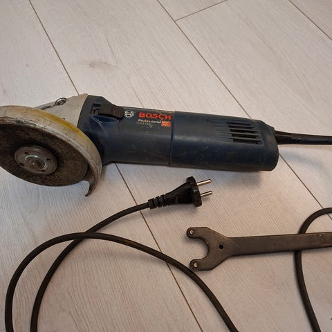 Bosch GWS kulmahiomakone, hieman vanhempaa mallia mutta täysin toimiva valmis käyttöön. Kipinäsuoja on kadonnut vuosien varrella... Uusia laikkoja mukaan.