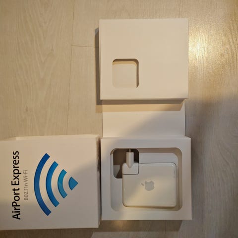 The Apple AirPort Express A1264 (released 2008) is a compact, white Wi-Fi base station, the first generation to support faster 802.11n (2.4/5GHz), used for creating or extending networks, printing wirelessly via USB, and streaming music with AirPlay, featuring Ethernet ports and a 3.5mm audio jack, but setup can be tricky and requires older Airport Utility versions or patches for modern systems, acting as a versatile, portable home networking/streaming device