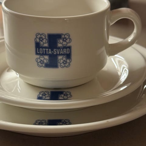 Arabian Forte kahvimuki Lotta Svärd syväranta kruunuleimalla ehjä