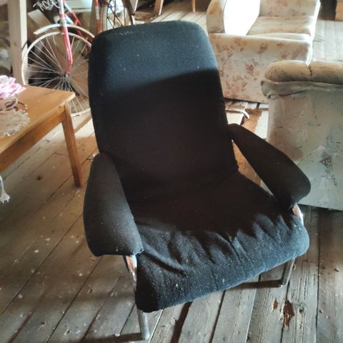 Tumma Söderhamn nojatuoli vaihdetaan riipputuoliin. Helsingissä.