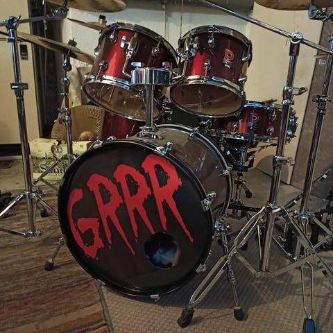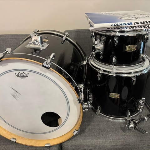 20" 10" 12" ja 14" tomit. Yamahan oma teräsvirveli sekä basarin pedaali. Taman haitsun jalka. Yamahan suorat pellin telineet, 2 kpl sekä merkitön puomiteline rideä varten. Penkin istuin on myös Yamaha. Eli vain pellit puuttuvat. Tomeissa on pearlin kelluvat kiinnikkeet sekä yamahan portaattomasti säätyvät kiinnikkeet. Hyvin jytisee, Tomien kalvot ehkä vaihtaisin. Vain myynti kun on toisetkin samanlaiset.