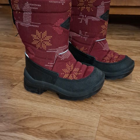 Mustat, kuin uudet Kuomat, yhdellä lapsella yhtenä talvena olleet käytössä. Ei ole mitään käytön jälkiä, ihanan lämpimät ja mukavat talvikengät.