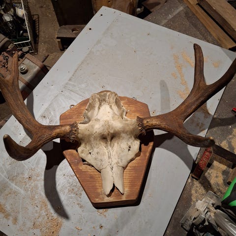 Hyväkuntoiset häränsarvet seinätelineellä.