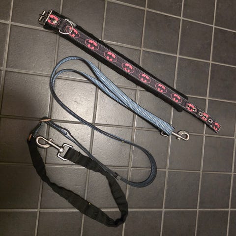 Mustat verkkokangashihnat koiralle, joissa on pehmustetut reunat ja säädettävät hihnat paremman istuvuuden takaamiseksi. Materiaali hengittävää verkkokangasta. Hyvät heijastimet, napakka pikalukko, 2kpl kiinnyslenkit. Koko, rinnanympärys noin 34...40cm.
