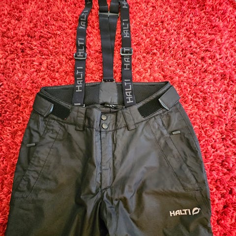 Haltin toppahousut/lasketteluhousut, koko 42. Vastaa mielestäni n. L kokoa. Mallin nimi tietääkseni "Rinne", näistä löytyy hyvin lisätietoa netistä. Lahkeessa hankaumajälki varmaan laskettelumonosta, muutoin todella hyväkuntoiset. Käytetty max. 5 krt.