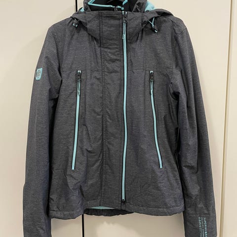 Superdryn pitkä (polvipituinen) musta takki. Polyester, naisten koko 38. Takki on pitkä ja siinä on melko iso huppu. Sopii viileisiin sääolosuhteisiin ja tarjoaa suojaa tuulelta ja kylmyydeltä. Hienopesu 30 astetta.